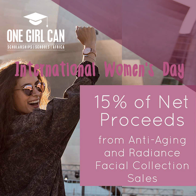 We are donating 15% of net proceeds from our Anti-Aging and Radiance Facial Collections on March 8 to One Girl Can to further their work towards a gender equal world.