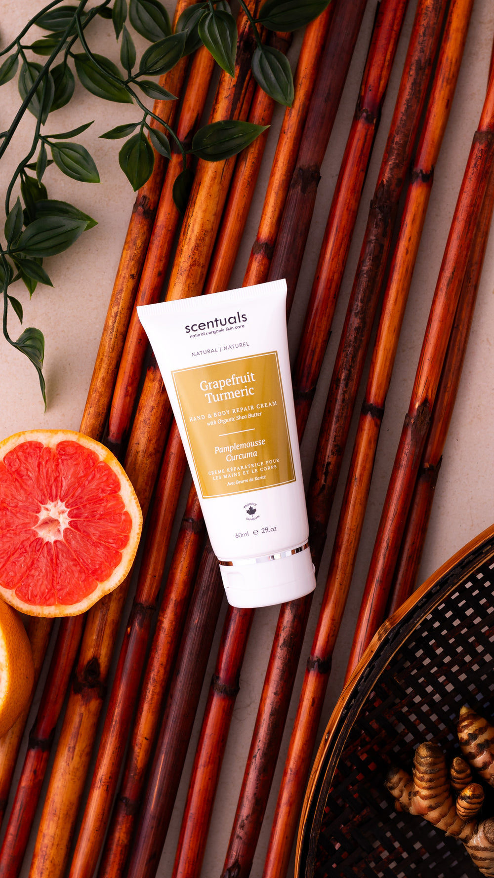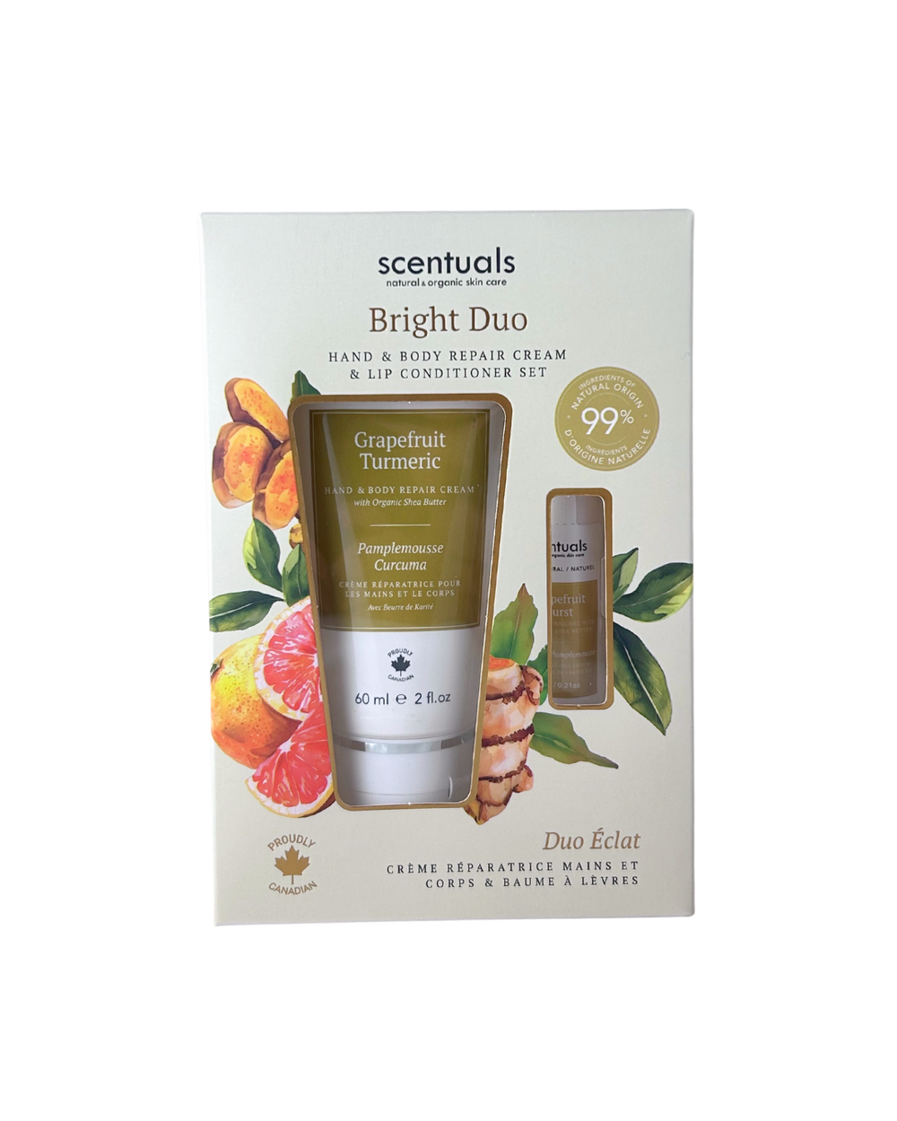 A citrus duo of daily essentials: Hand Repair Cream & Lip Conditioner.